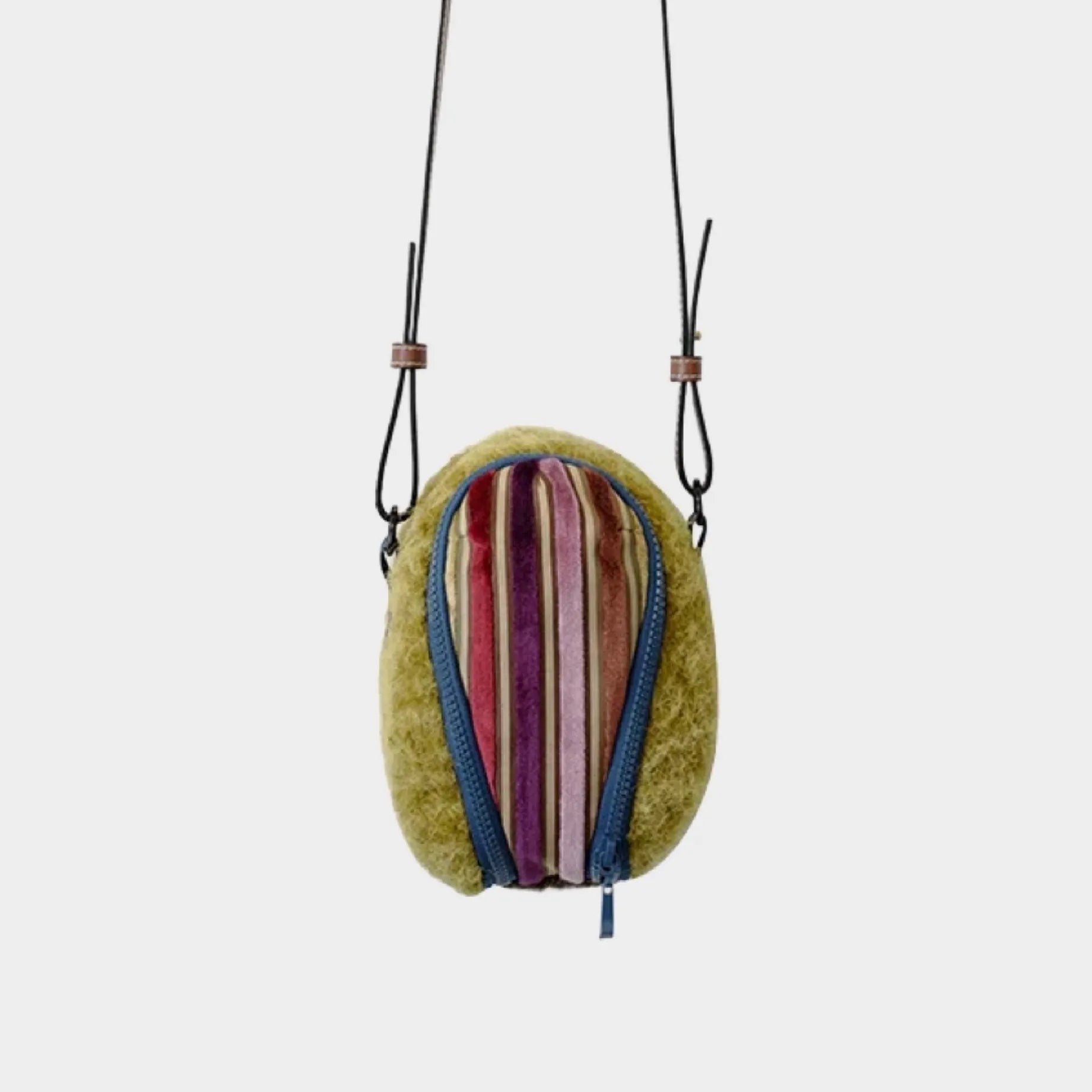 Crafted with a combination of high-quality plush and woven fabric, this bag offers a unique shape that is sure to turn heads.