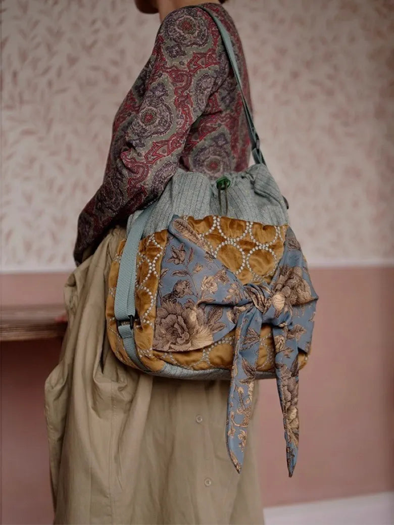 Introducing our versatile patchwork shoulder bag, designed for both single-shoulder and double-shoulder wear. Crafted from a blend of jacquard woven fabric and soft denim, this bag is perfect for fall and winter. The denim fabric is exceptionally soft, resistant to pilling, and does not attract lint.
