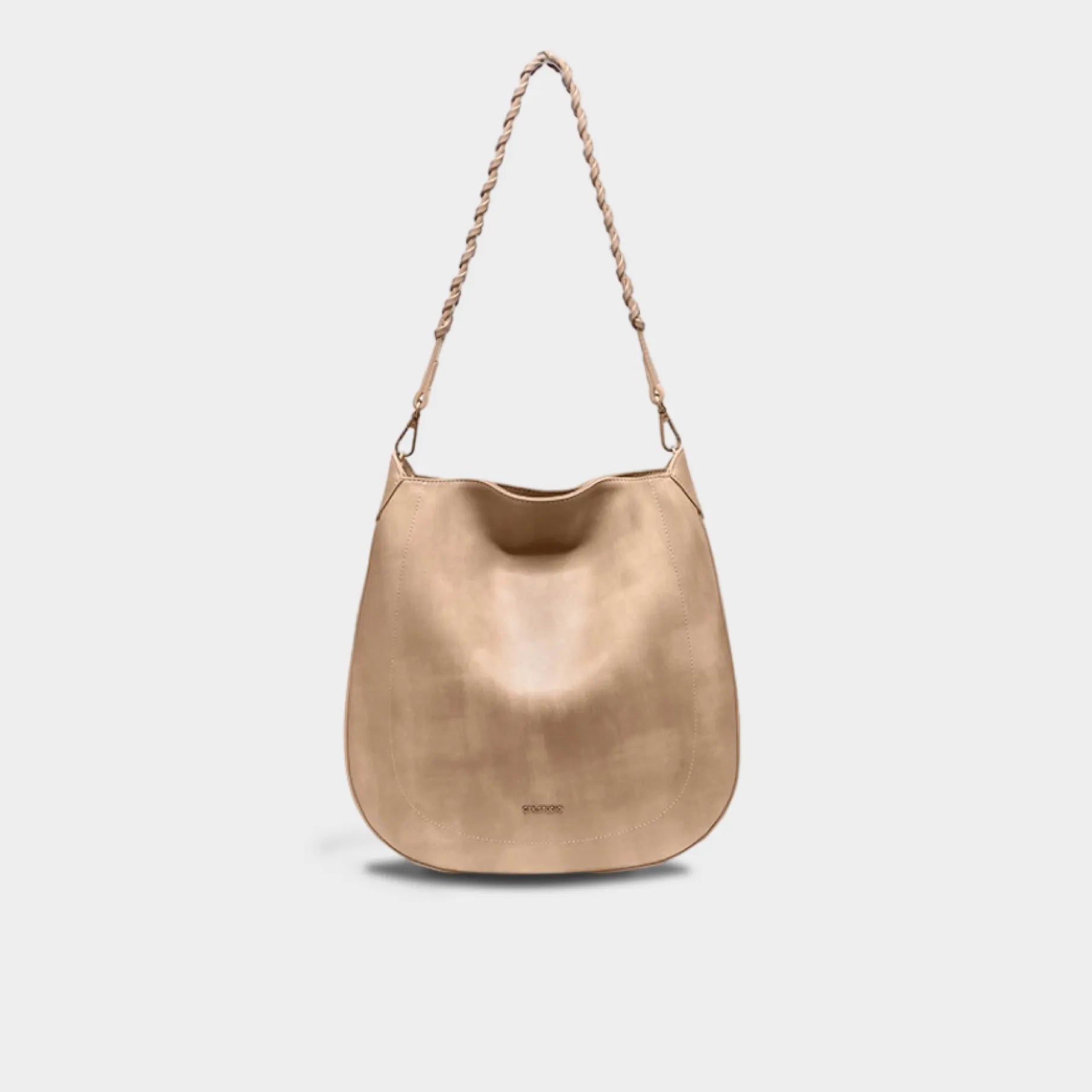 The bag features a spacious main compartment with an inner slip pocket and a zippered hidden pocket, providing ample space for your essentials, including an 11-inch iPad, phone, sunglasses, wallet, and makeup.