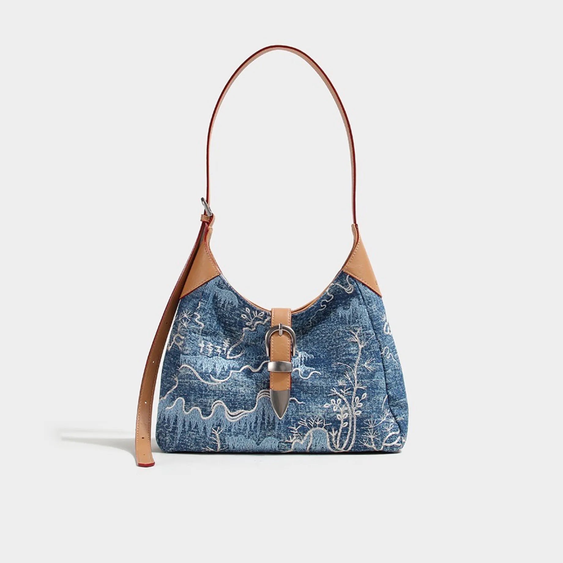 Designed with versatility in mind, the PARC Embroidered Denim Shoulder Bag features an adjustable shoulder strap, allowing you to effortlessly transition between a shoulder bag and a crossbody style, depending on your preference and the occasion.